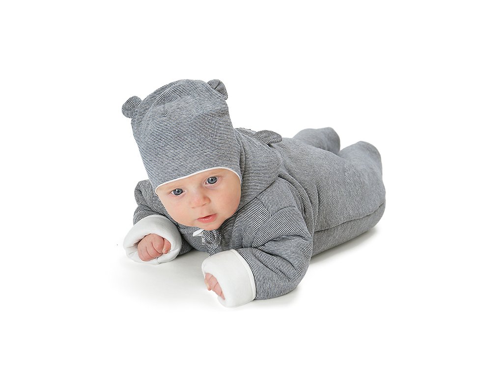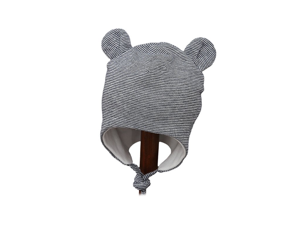 Kojenecká čepice s našitým roztomilýma ušima medvídka je určená k nošení na jaře/podzim. Čepice je podšitá příjemnou 100% bavlněnou podšívkou po celé ploše čepice a je celá z bavlny. Přiléhavý střih a šněrování pod bradou udrží čepici na správném místě a pěkně zakryje uši, ale netlačí miminko při ležení, což ocení každá maminka.