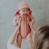 Letní čepice s ochranou na krk z mušelínu (z organické bavlny 100% GOTS). Tuto čepici ocení i ti největší výletníci, a to díky prodyšnému mušelínovému materiálu ale také ochraně krku, díky které se miminko nespálí na sluníčku, nebo jen tak neofoukne. Provázky pod bradičkou pak zajišťuje, že čepice nesklouzává z hlavičky při každém pohybu. Starorůžová barva je snadno kombinovatelná a ocení ji každá malá princezna.